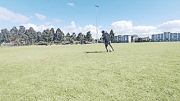 我们首先做一个快速转身,然后向标志盘(充当防守者)方向爆发。