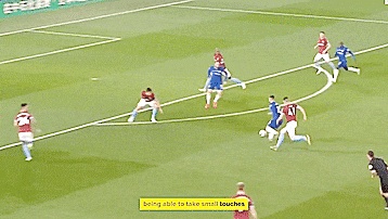 盘带的另一个关键要素是采用小碎步触球,并能在紧张激烈的比赛中始终保持球贴近自己的控制范围。
