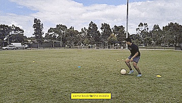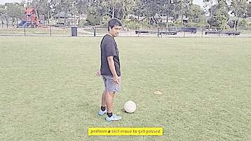 做一个技巧动作来摆脱防守,并将球传入我们通过使用标志盘制成的小球门中。