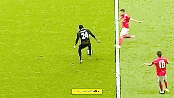 改变方向有不同的方法,我们可以进行脚底拉球、L型拉球,甚至外脚背切球。